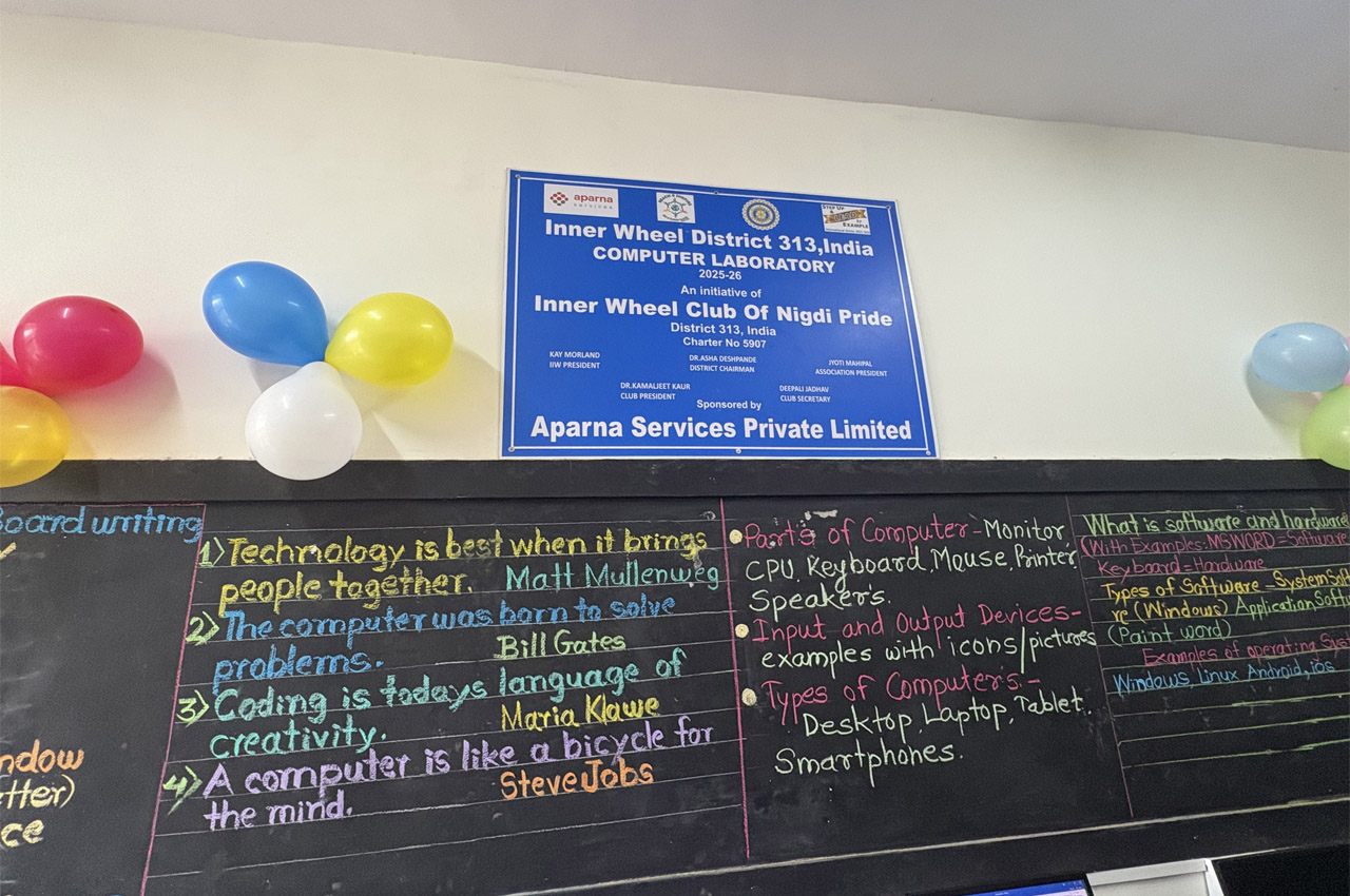The school had a computer room but did not have any computers for the children to learn, and an application was received by Inner Wheel Club of Nigdi-Pride for providing them computers for their lab. Inner Wheel, in turn, approached Aparna Services for donating a computer lab to the school.